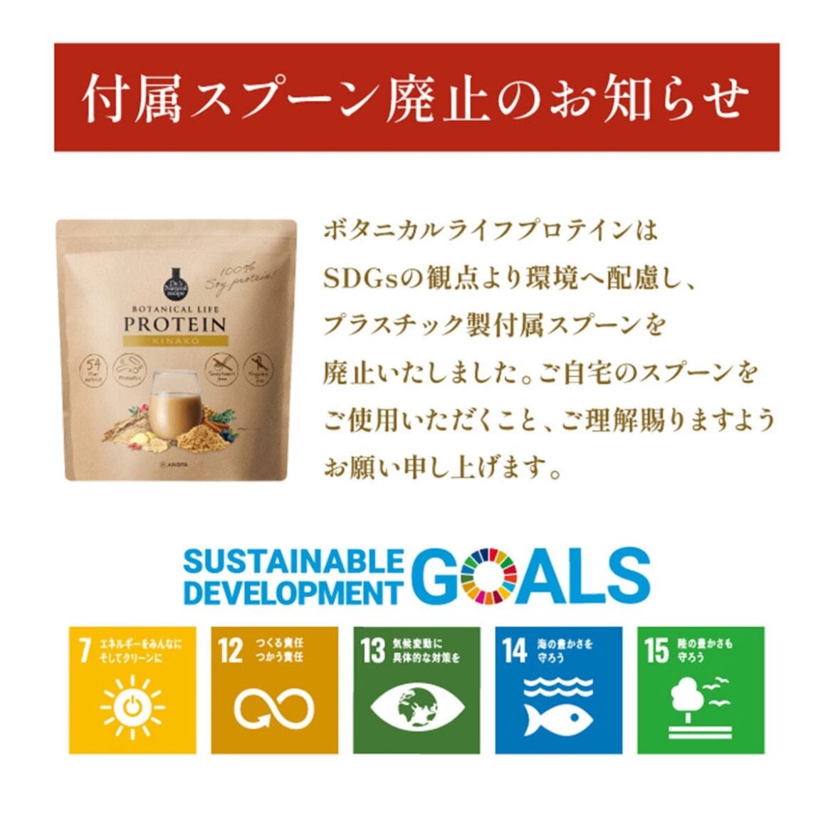 ※ボタニカルライフプロテインは、SDGsの観点より環境へ配慮し、プラスチック製付属スプーンを廃止いたしました。