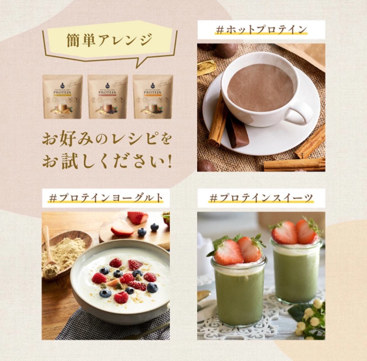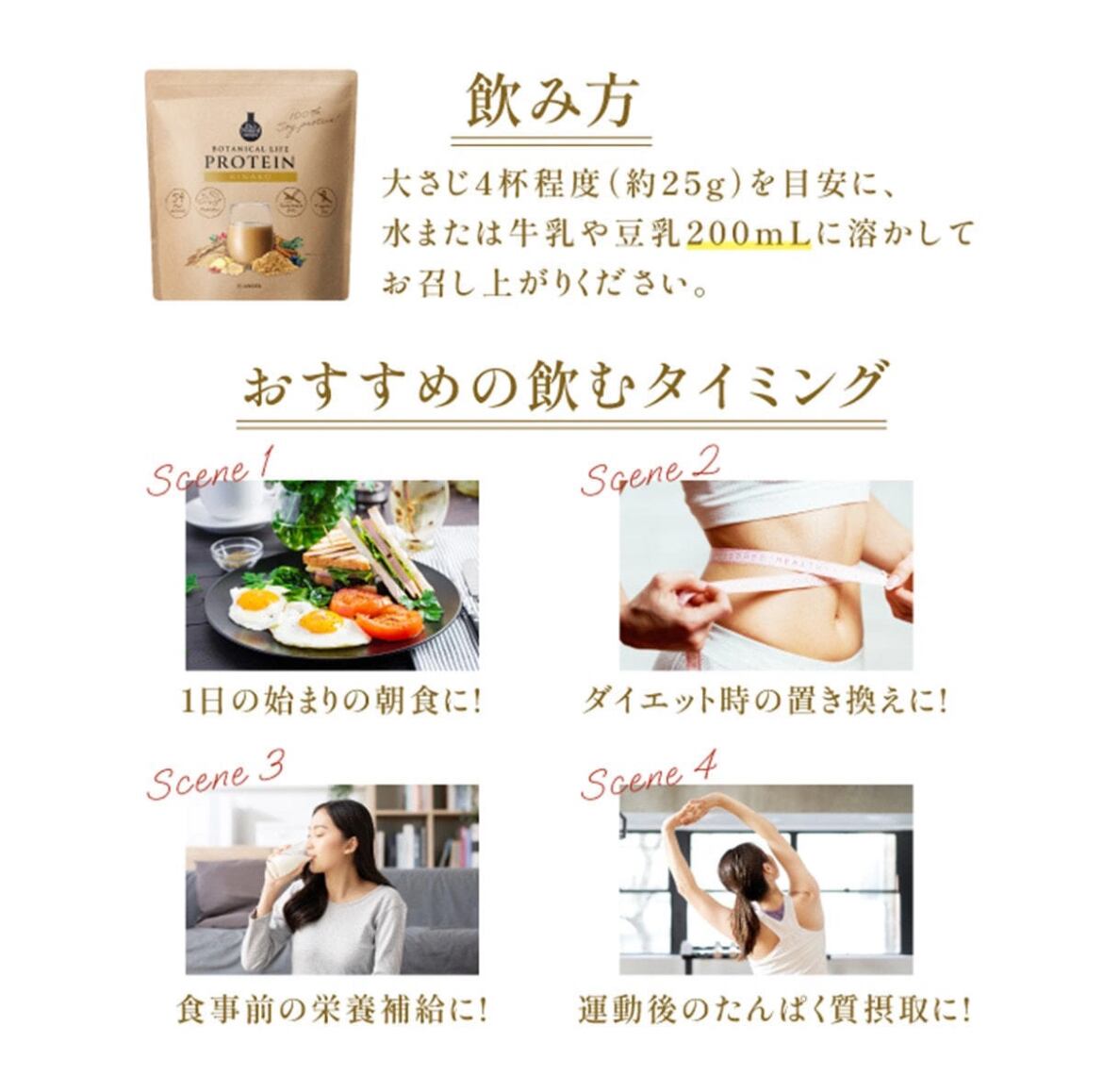 大豆、玄米、麻の実を使用した、良質な植物性たんぱく質で女性らしいキレイボディに。